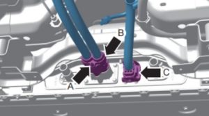 ③斷開(kāi)電池高壓線(xiàn)束連接插頭(箭頭B)